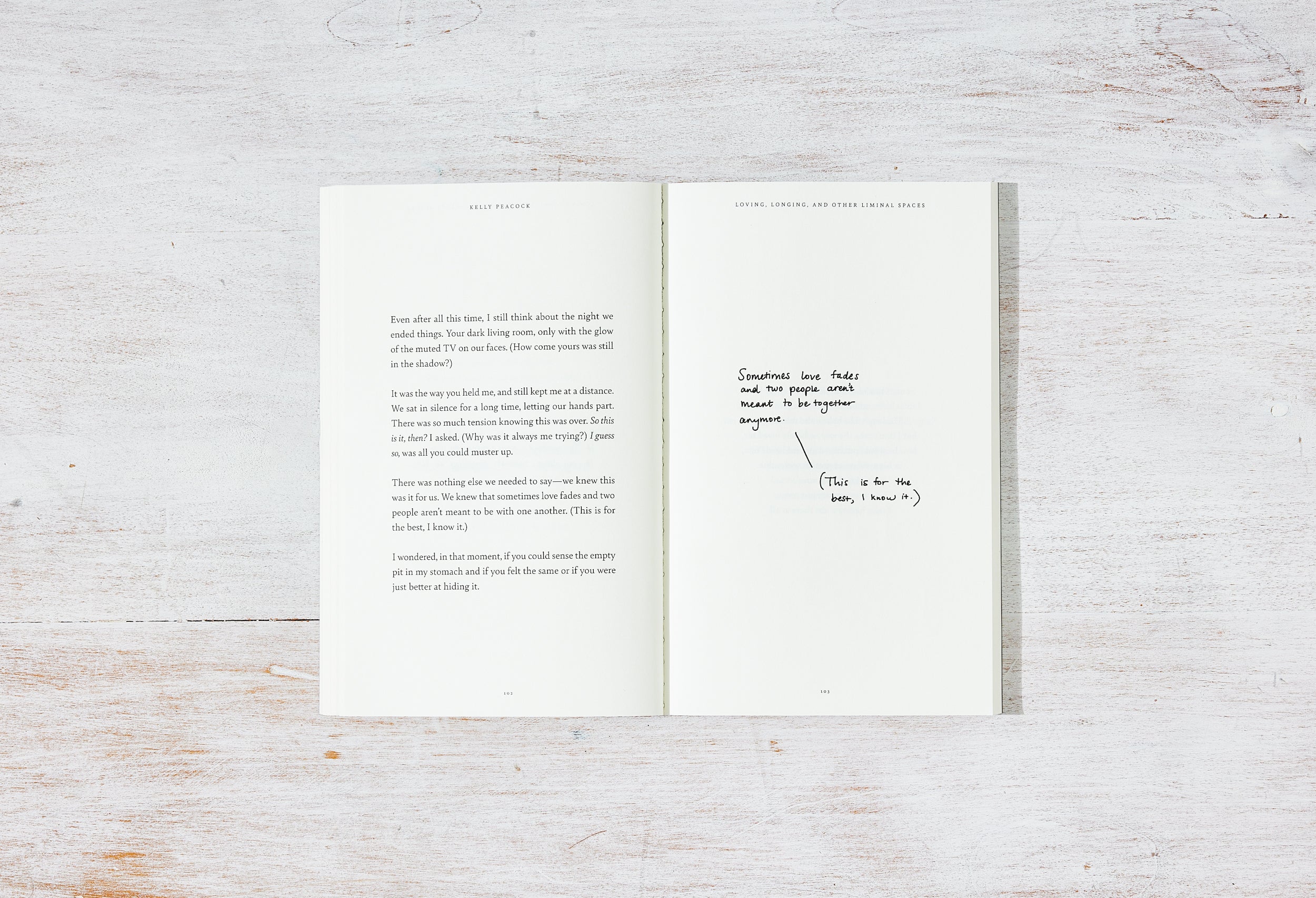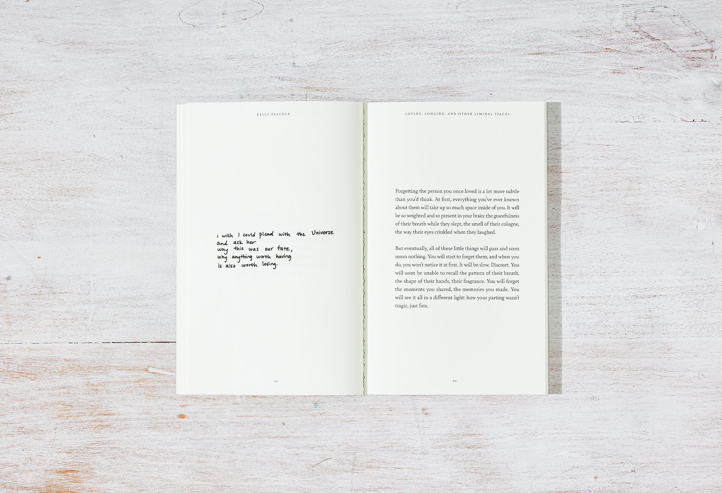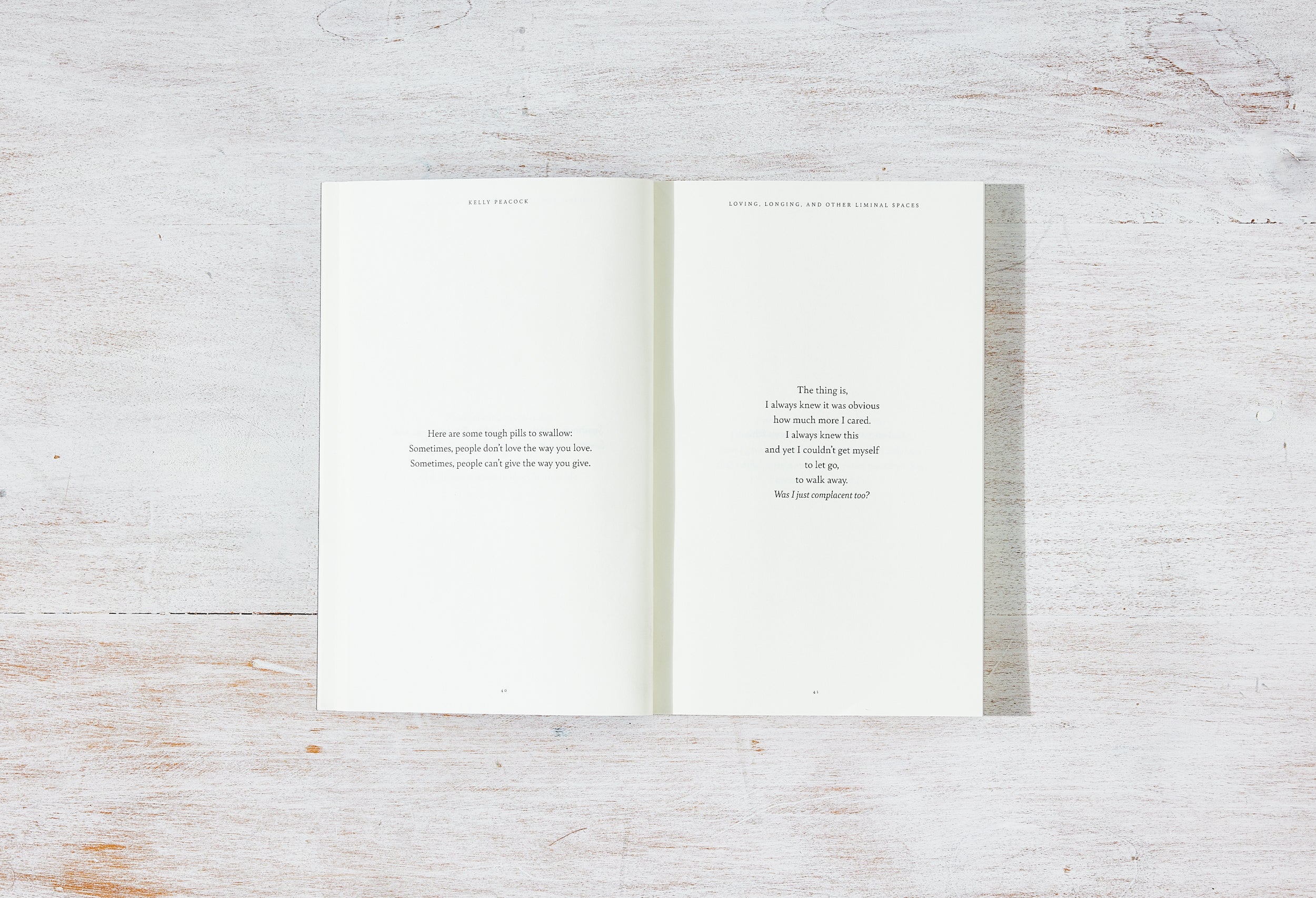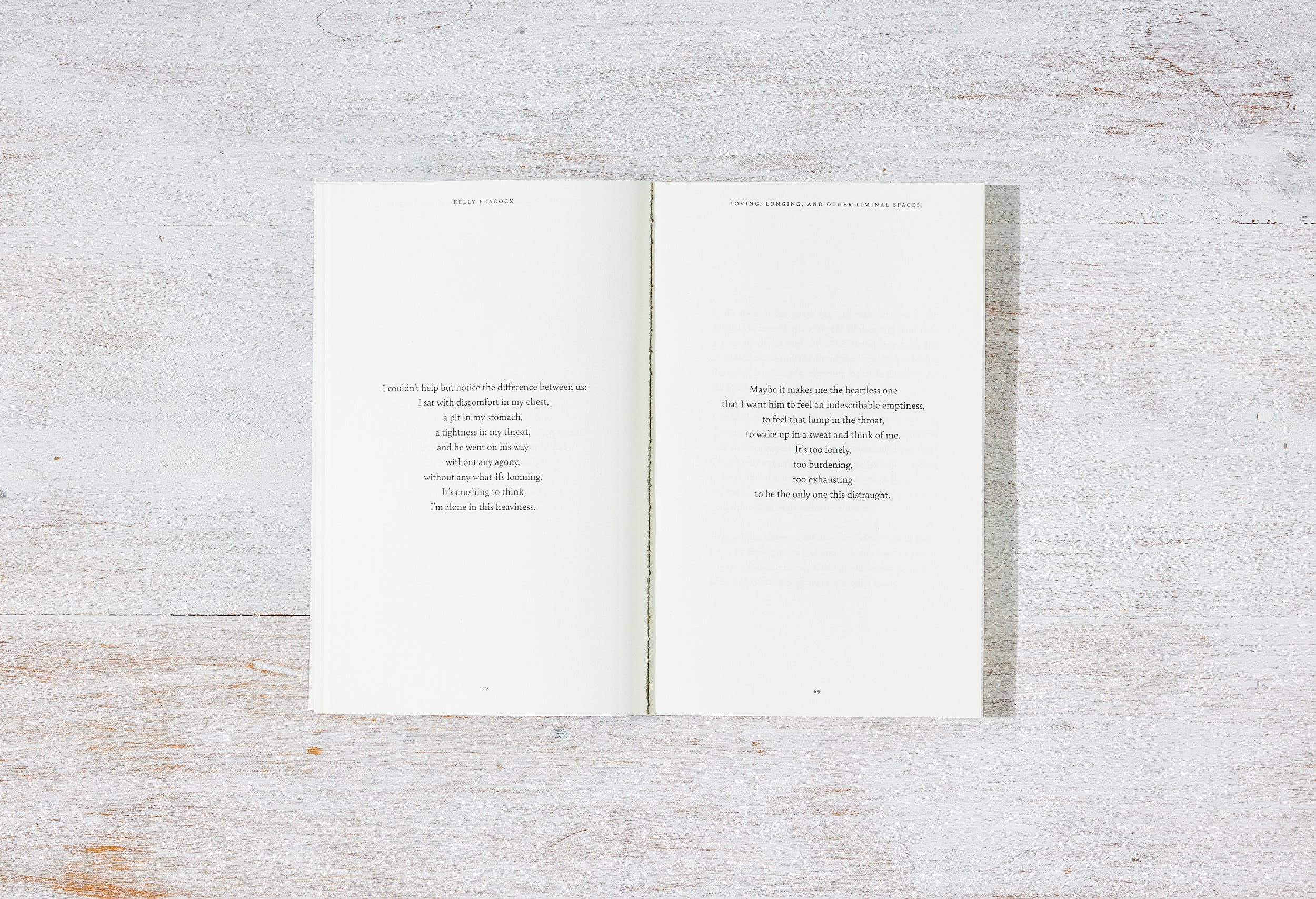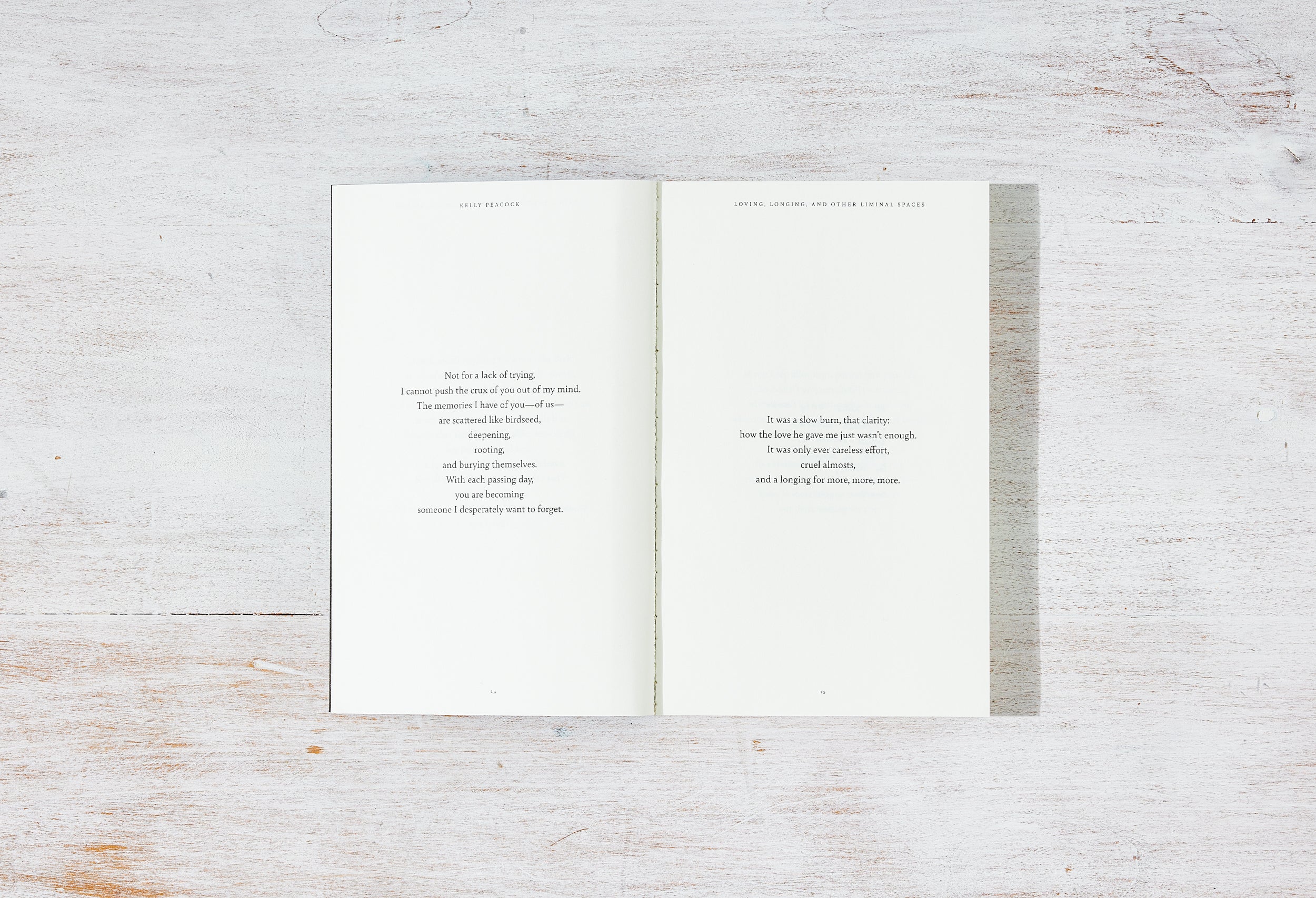 Loving, Longing, and Other Liminal Spaces is Kelly Peacock’s second collection of prose.