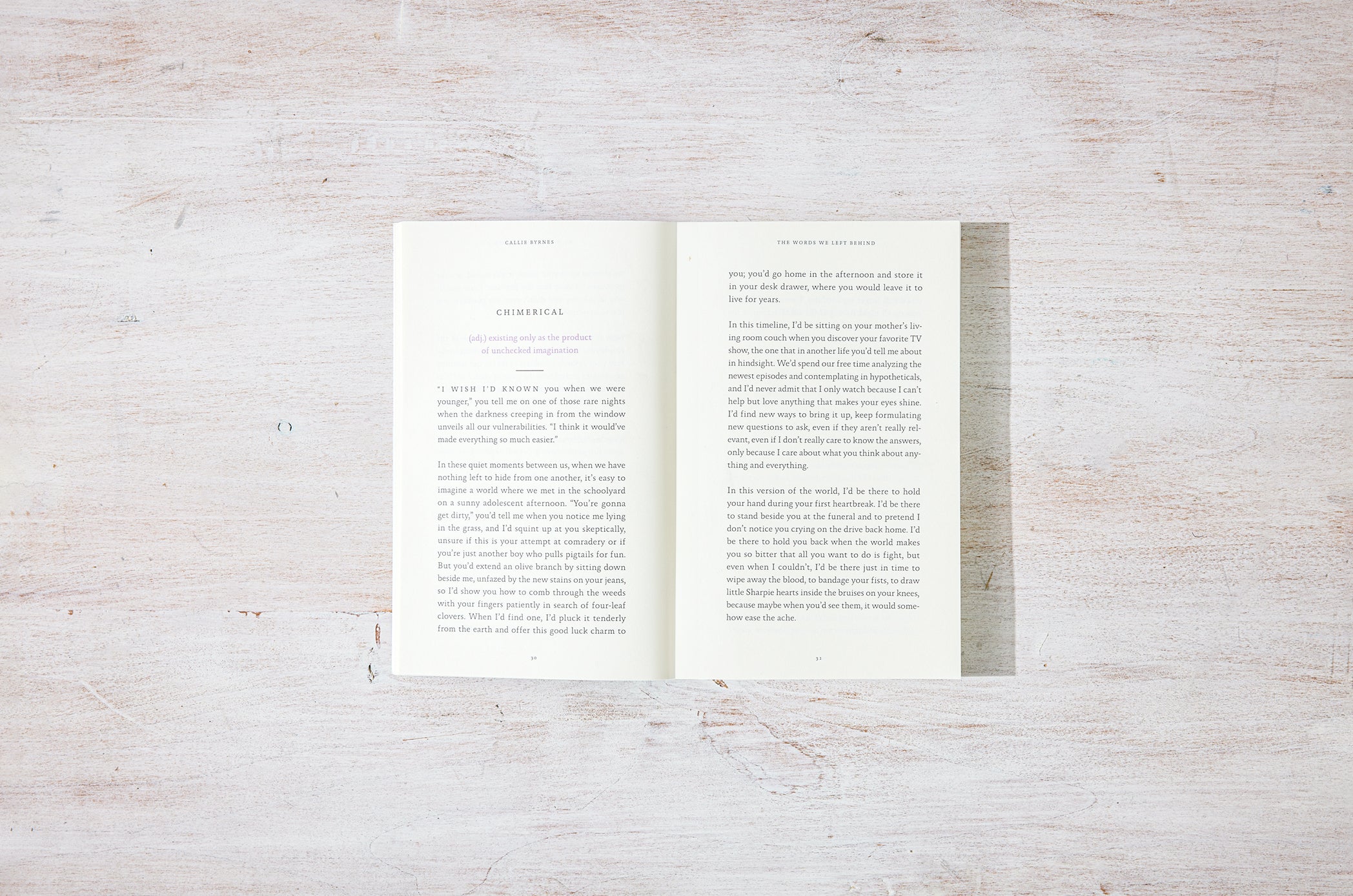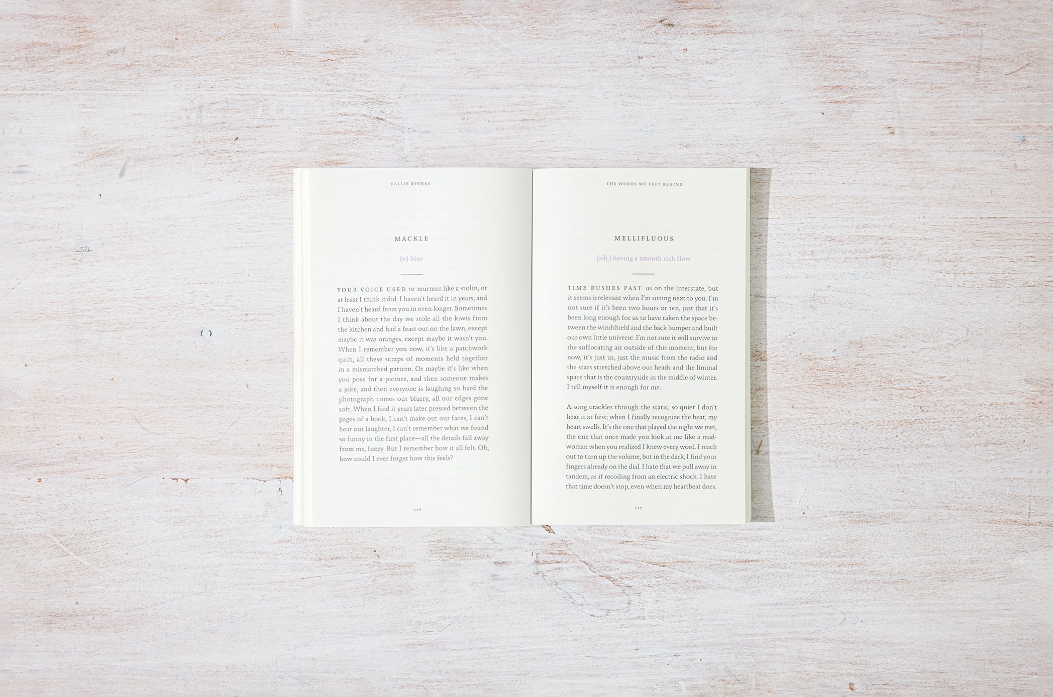 Callie Byrnes's debut book uses prose poetry to explore language, memory, and the profundity in small, everyday instances. Using words and their definitions as the canvas to explore the emotions and experiences that are specific yet universally understood, The Words We Left Behind is a love letter to the moments that make up a life.