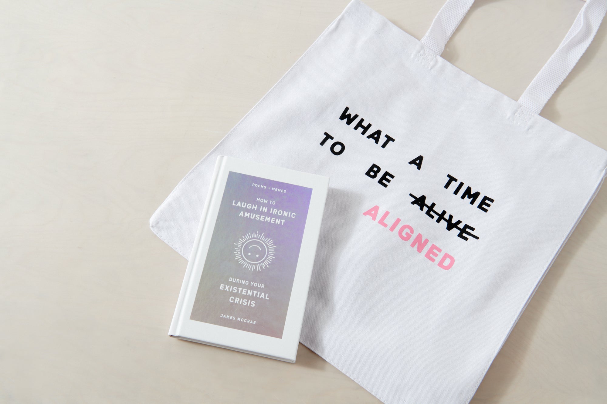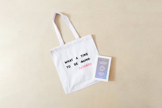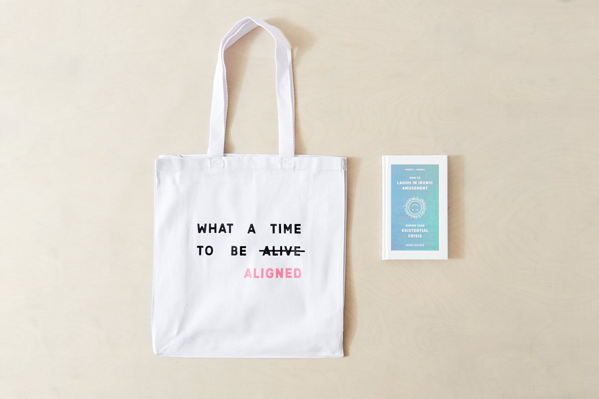 Make this the year when you face and accept your present reality with humility and joy with James McCrae’s brilliant book of prose and hand drawings reflecting on the human condition. Let this tote remind you that today, every day, is the perfect time to not only live but live in alignment.