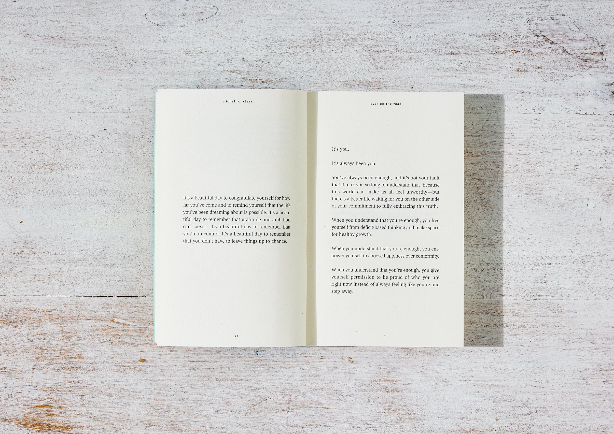 "Eyes on the Road is a must-read book that can help you heal deeply! Michell C. Clark has created a beautiful collection of short-form prose that is not only empowering but it helps settle the mind during turbulent times. This book is bound to help countless people reach a new level of growth."