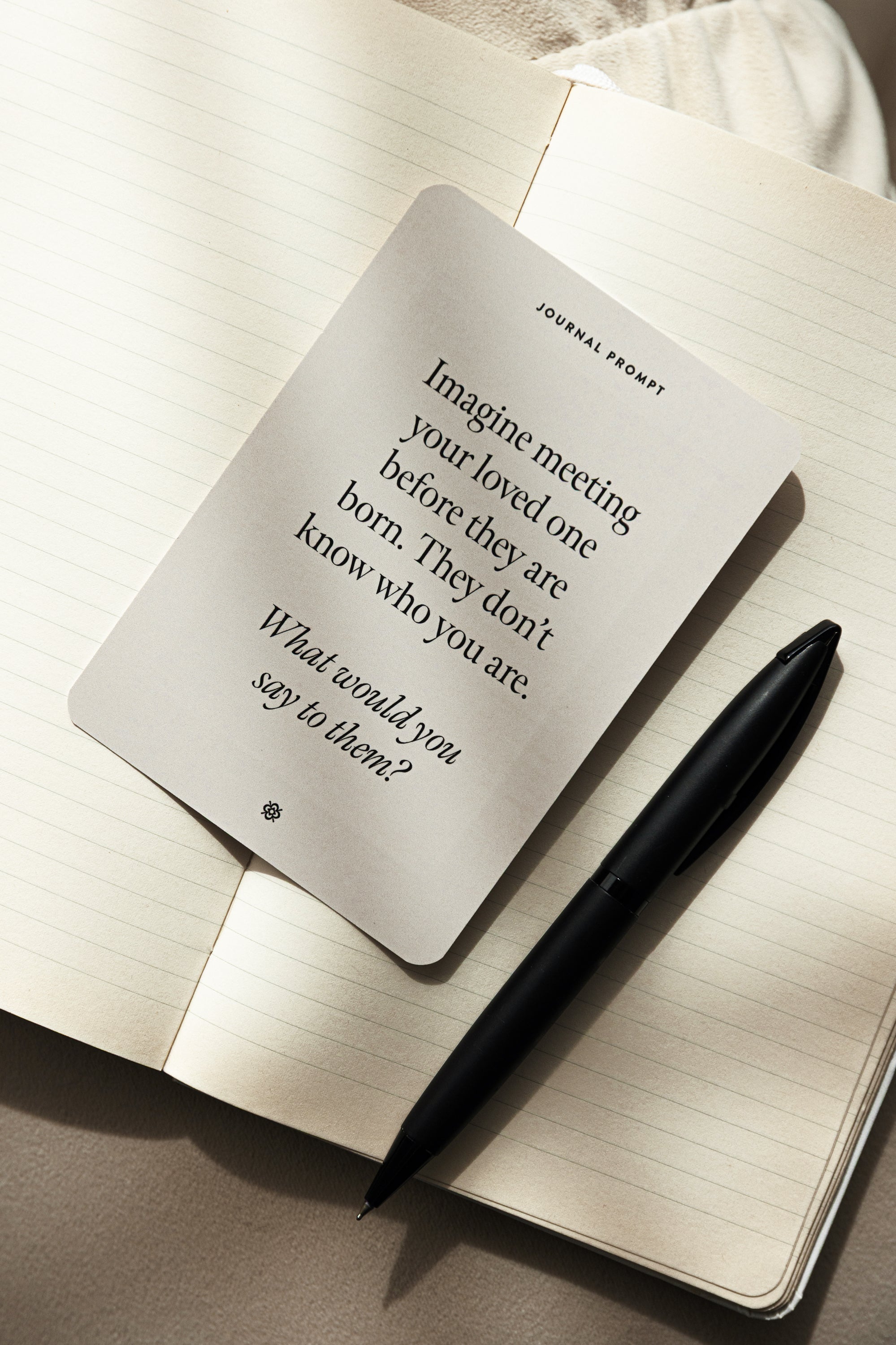 A simple approach is to pull a card whenever you feel the need or desire to. This method can be used to help you feel a connection to your lost loved one and gently process their passing over time. Another option is to create a structure to help you process grief during especially difficult times. For example, pull a journal entry in the morning. Pull a reminder in the afternoon to help you get through the day, and finally, pull a card to receive words from your loved one before bed to help you sleep. prompt card and write your journal