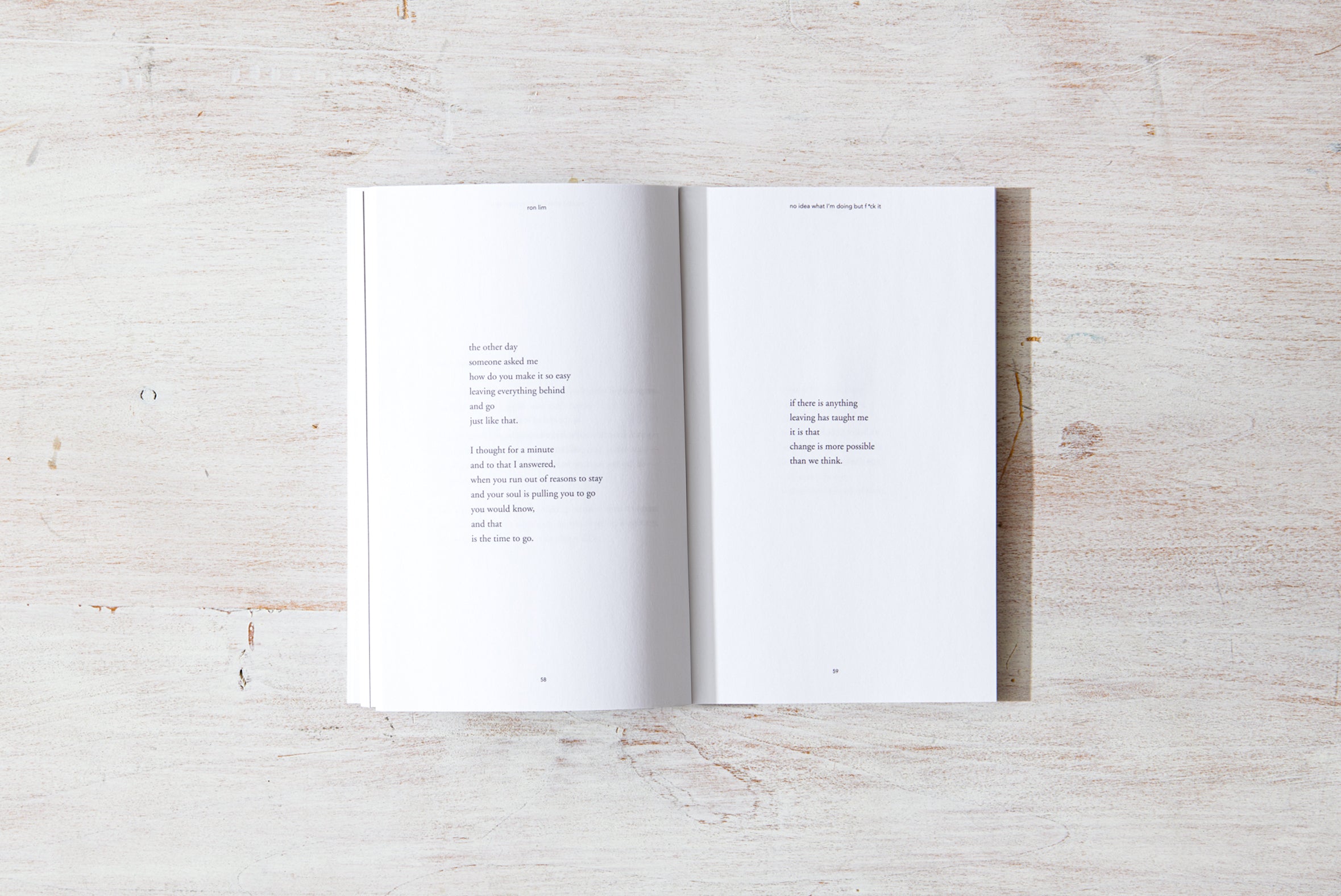 Following the success of his Instagram account @ronwritings, Ron Lim unleashed his first poetry book, No Idea What I’m Doing But F*ck It. This second edition, published by Thought Catalog Books, is an international re-introduction of Ron’s previously self-published debut in a lovely new package complete with additional poems and an updated author’s note.