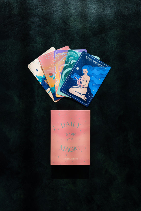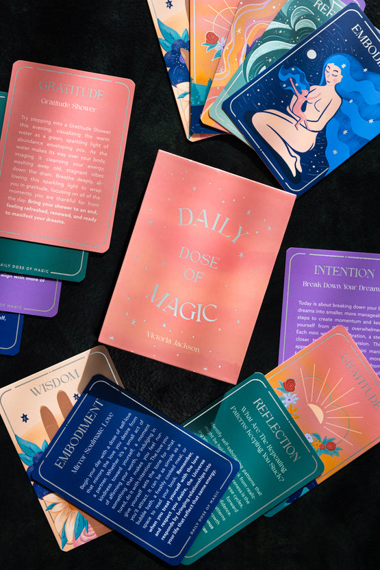 The Daily Dose of Magic Manifestation Card Deck by Victoria Jackson is designed to offer inspiration across five key areas: Intention, Embodiment, Gratitude, Reflection, and Wisdom, guiding you as you manifest your dream life into reality.