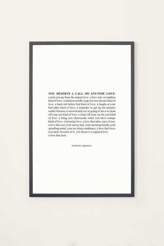 Michaela Poetry You Deserve A Call Me Anytime Love Print