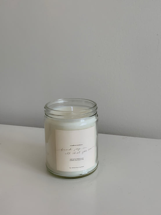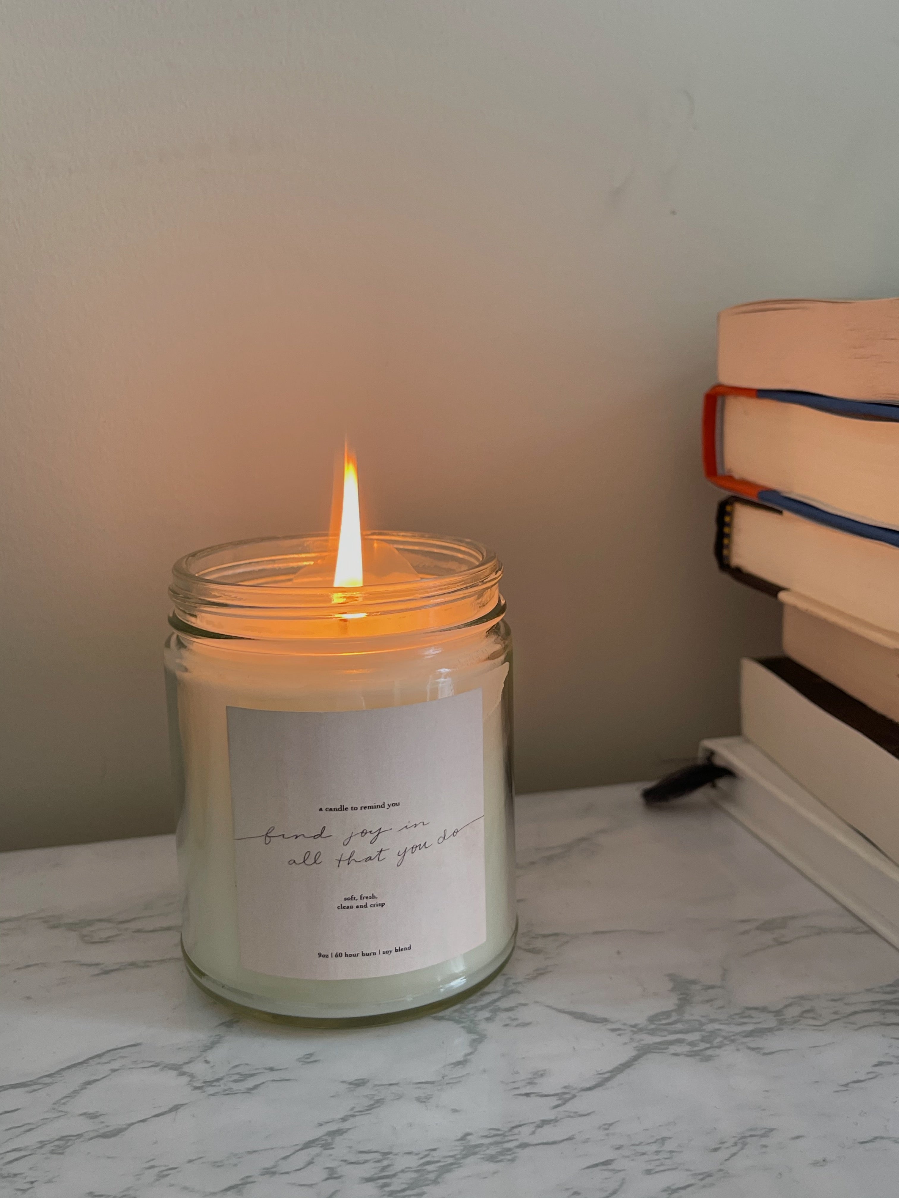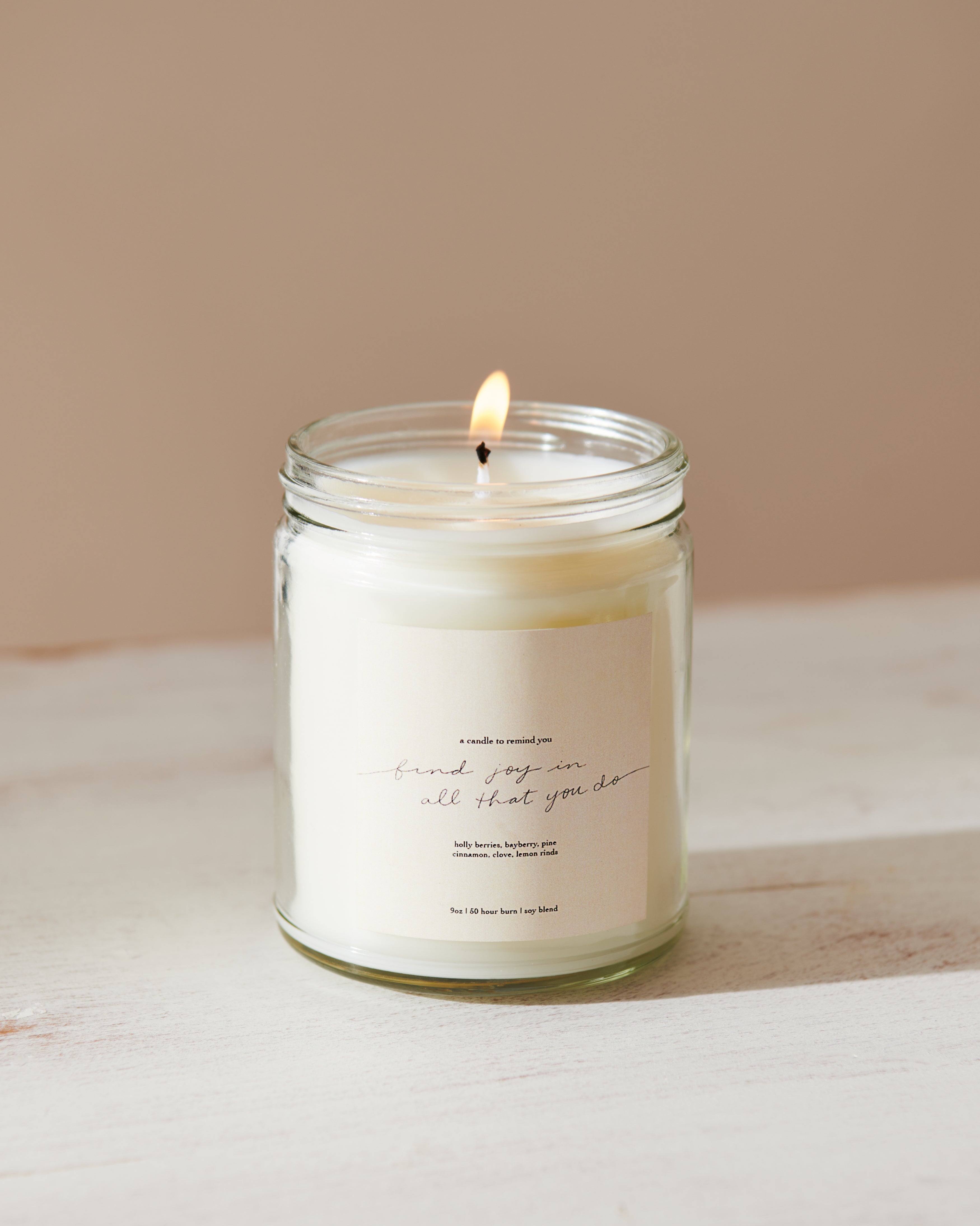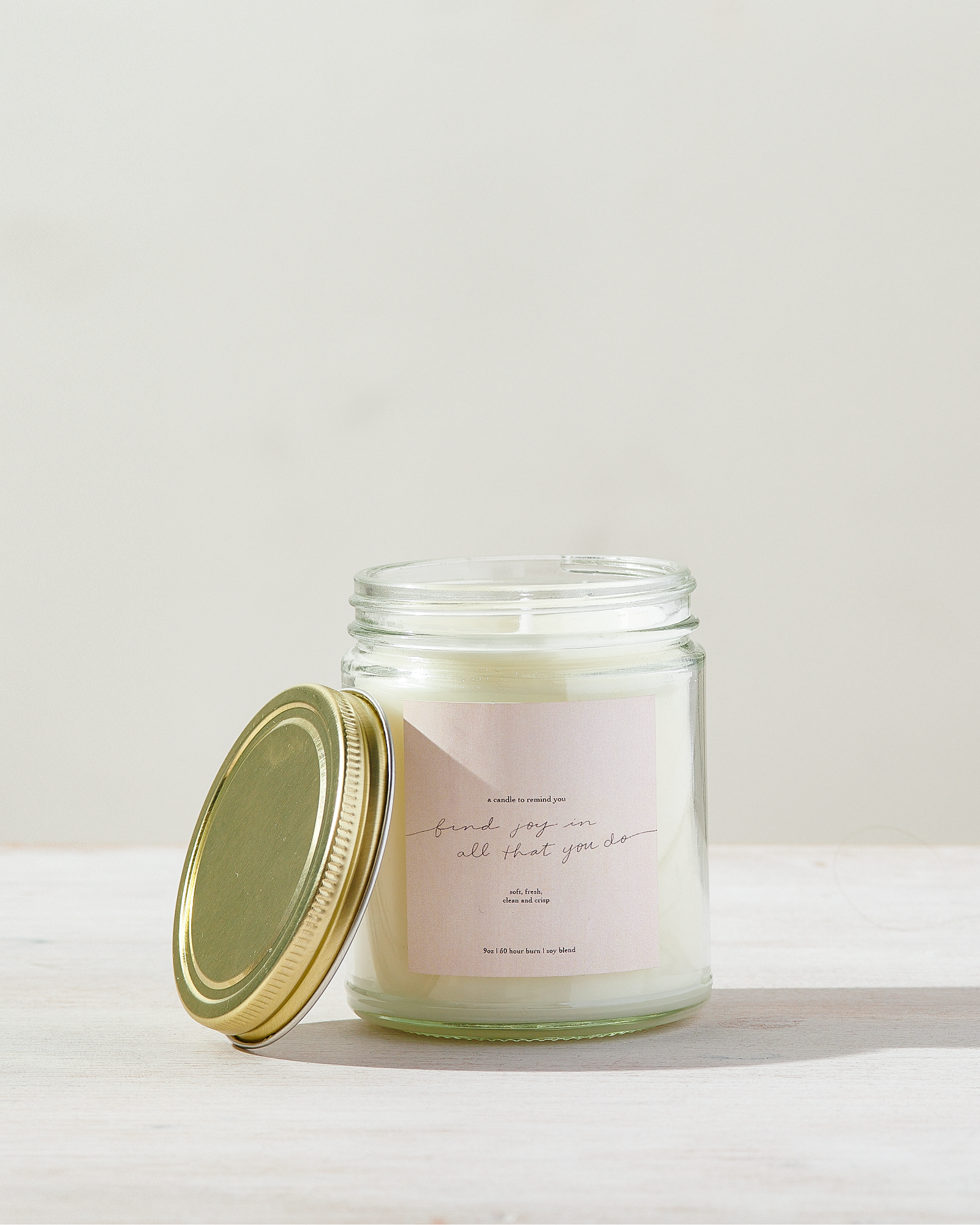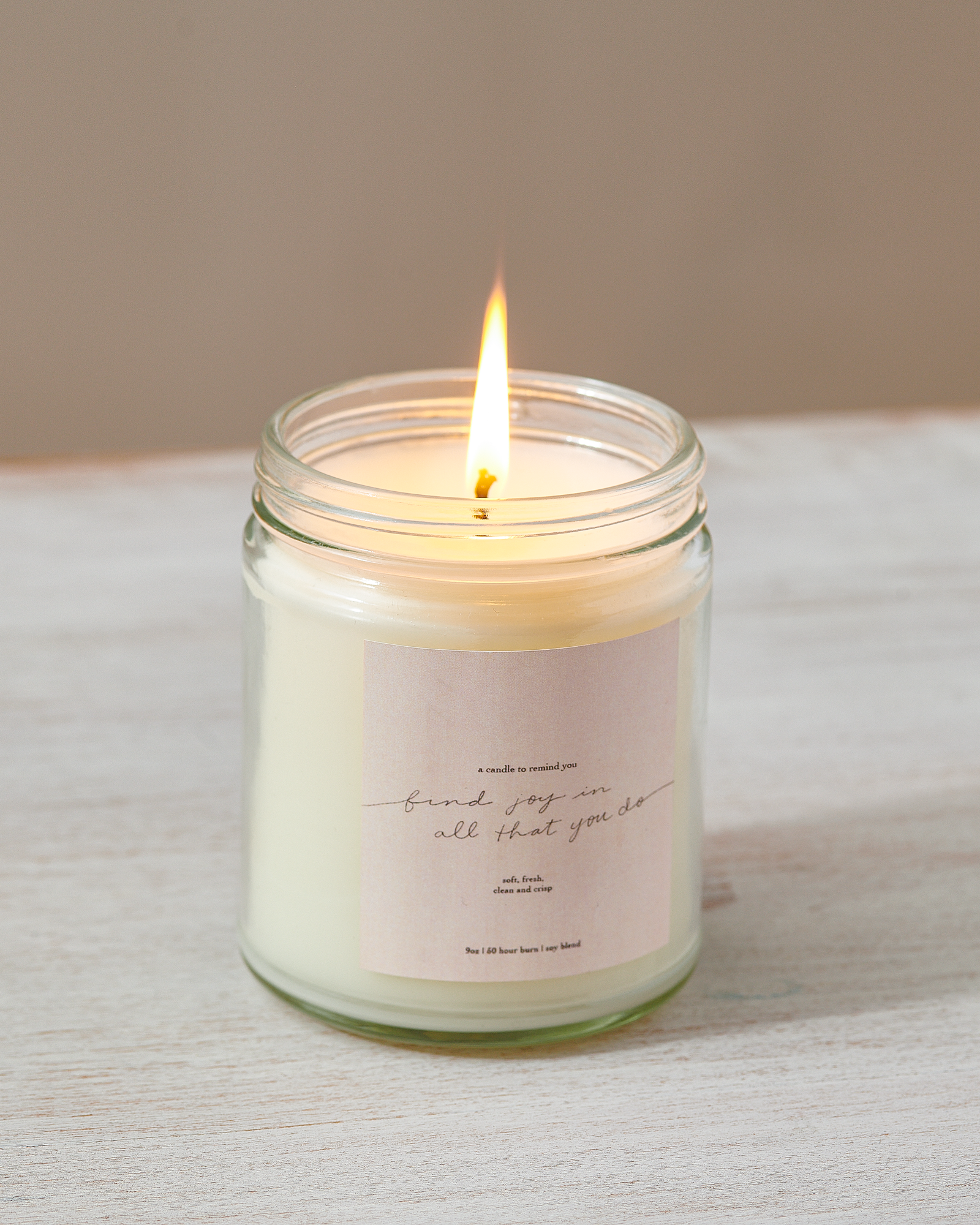 A candle to remind you to find joy in all that you do. Joy is everywhere. No matter what is going on in your world or the world around you, joy can be found.
