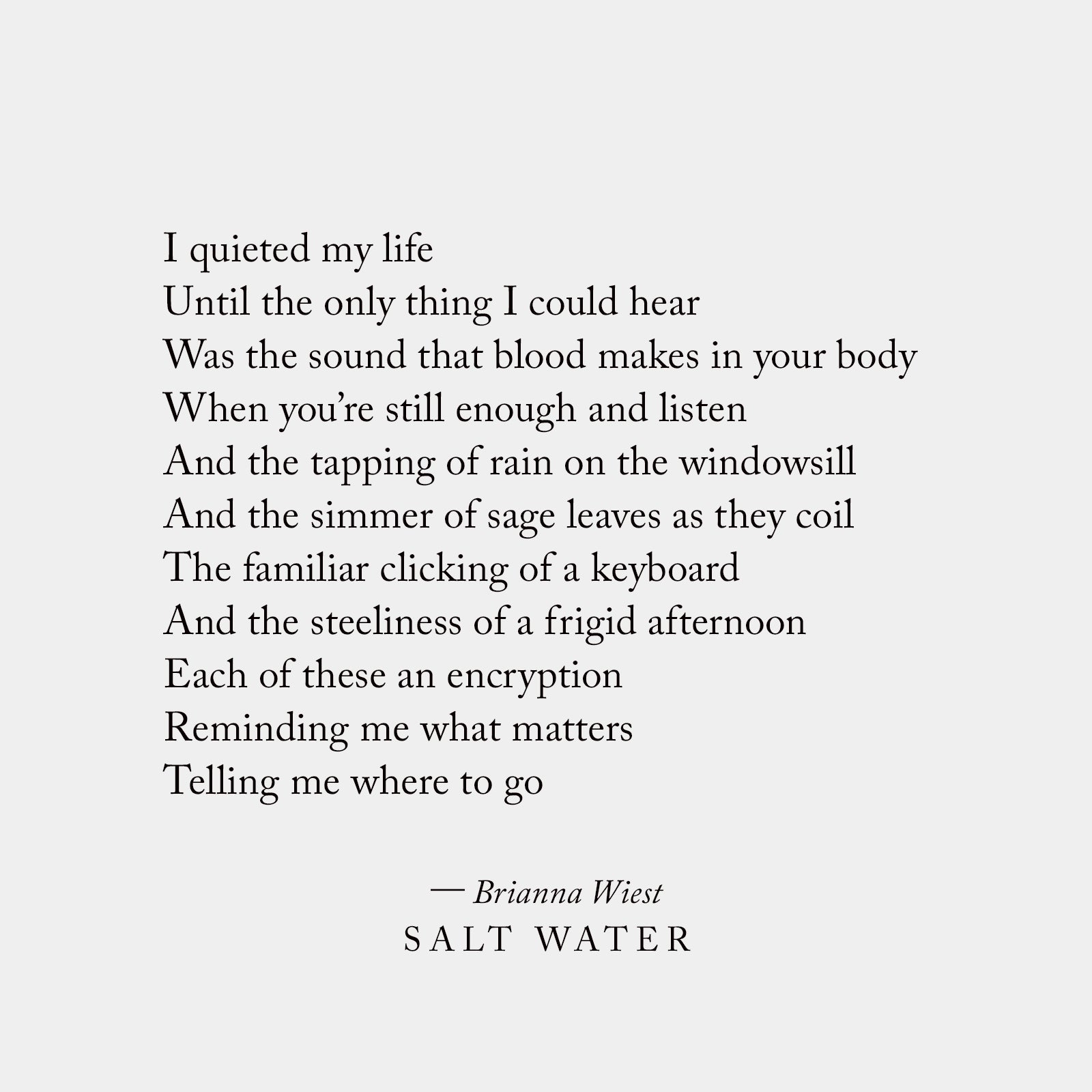 Through her freeform approach, Brianna’s words artfully illustrate our deep connection to the natural world as well as to ourselves, distilling the essence of wisdom into lines that are sure to touch your heart and open your soul.
