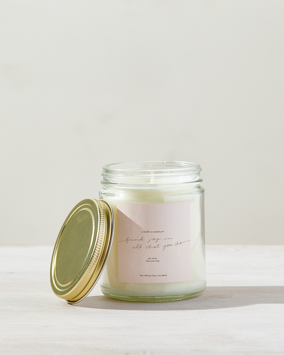 A candle to remind you to find joy in all that you do. Joy is everywhere. No matter what is going on in your world or the world around you, joy can be found.