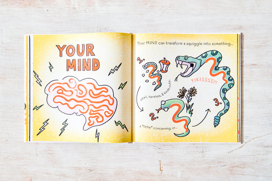 But sometimes, if you look at a squiggle in a certain way, it can seem like something MORE… something SERIOUS!!! A Squiggle Is Just A Squiggle explores the limitless potential of the human imagination while introducing basic mindfulness skills.
