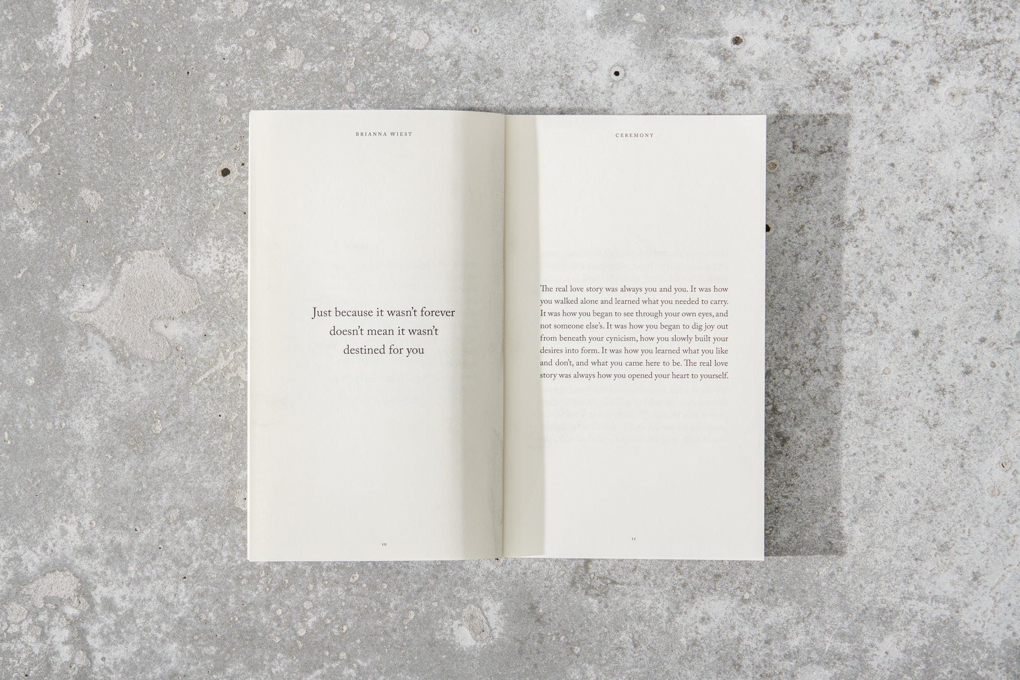 Ceremony is a collection for those on the cusp of becoming. It is a reminder that we were not meant to fit into this world perfectly, but to live in such a way that might forge a path all our own. It is a reminder that we are one with each other and nature itself. It is a reminder that we contain within us the latent potential of every future possibility we can conceive of. It is a reminder that we often must release what is not ours in order to receive what is, that we are all born with a unique imprint to leave upon the world, and that self-love is not an infatuation, but a homecoming. Ceremony is a book written around the idea that the most unlikely moments are often the very ones offering us a chance to meet ourselves more deeply; it is a book for the ones who are ready to stop waiting and wondering, and dive all the way into who they were meant to be.