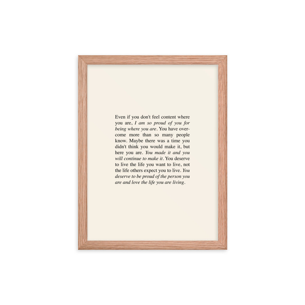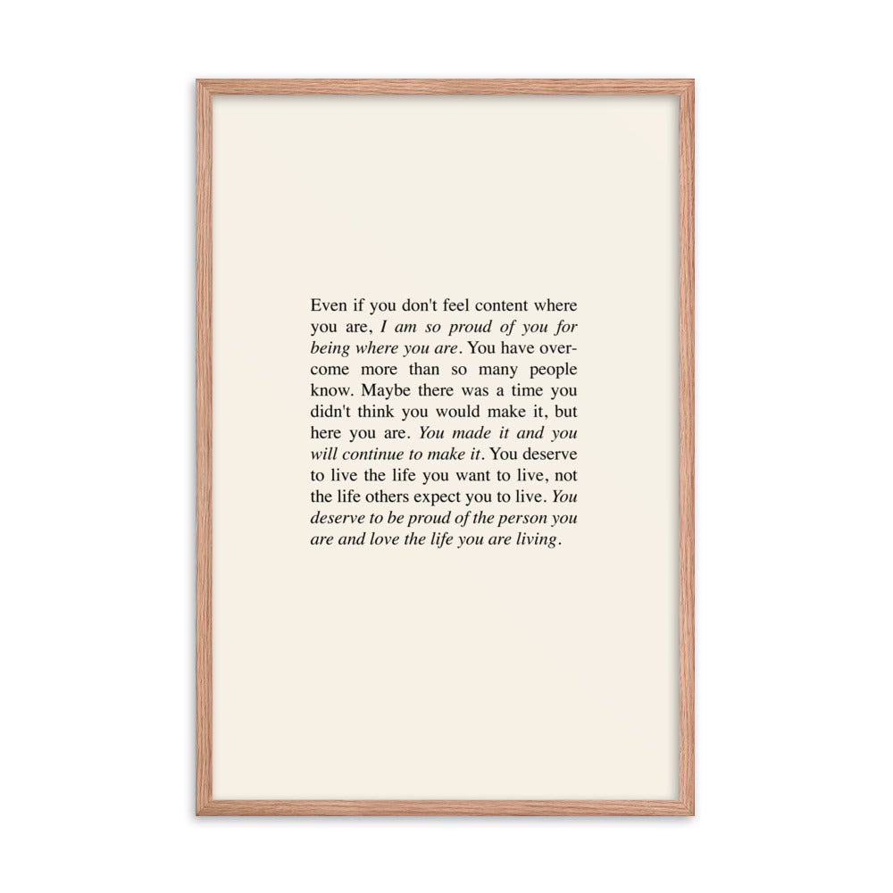 Even if you don't feel content where you are, I am so proud of you for being where you are. You have overcome more than so many people know. Maybe there was a time you didn't think you would make it, but here you are. You made it and you will continue to make it. You deserve to live the life you want to live, not the life others expect you to live. You deserve to be proud of the person you are and love the life you are living.