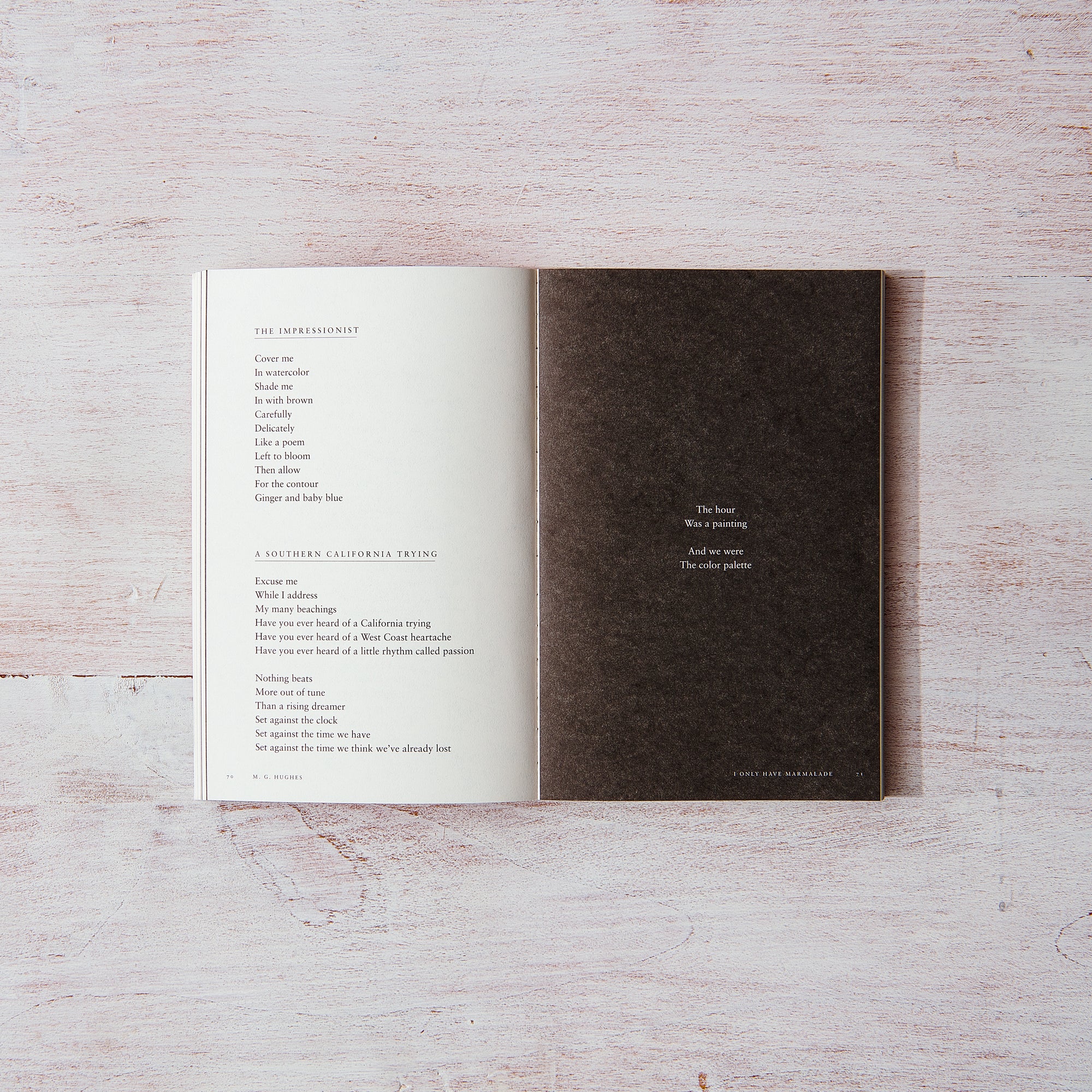 Echoing themes of healing, identity, race, feminism, and the environment I Only Have Marmalade is a poetry collection that seeks to answer the question: “What’s going on?” By reflecting on what it means to grow up both Black and the daughter of an immigrant, exploring complicated memories of her mental health journey, and assembling bittersweet paintings of the social and environmental climate she exists within, M. G. Hughes’ words offer a balm to anyone who has ever felt completely lost, unsure, or unwanted.