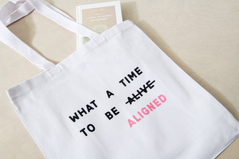 Make this the year when you face and accept your present reality with humility and joy with James McCrae’s brilliant book of prose and hand drawings reflecting on the human condition. Let this tote remind you that today, every day, is the perfect time to not only live but live in alignment.